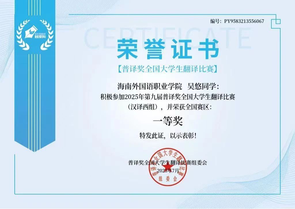 喜报!开云官网学生斩获2025年第九届普译奖全国大学生翻译比赛一等奖银奖(全国第二名)!