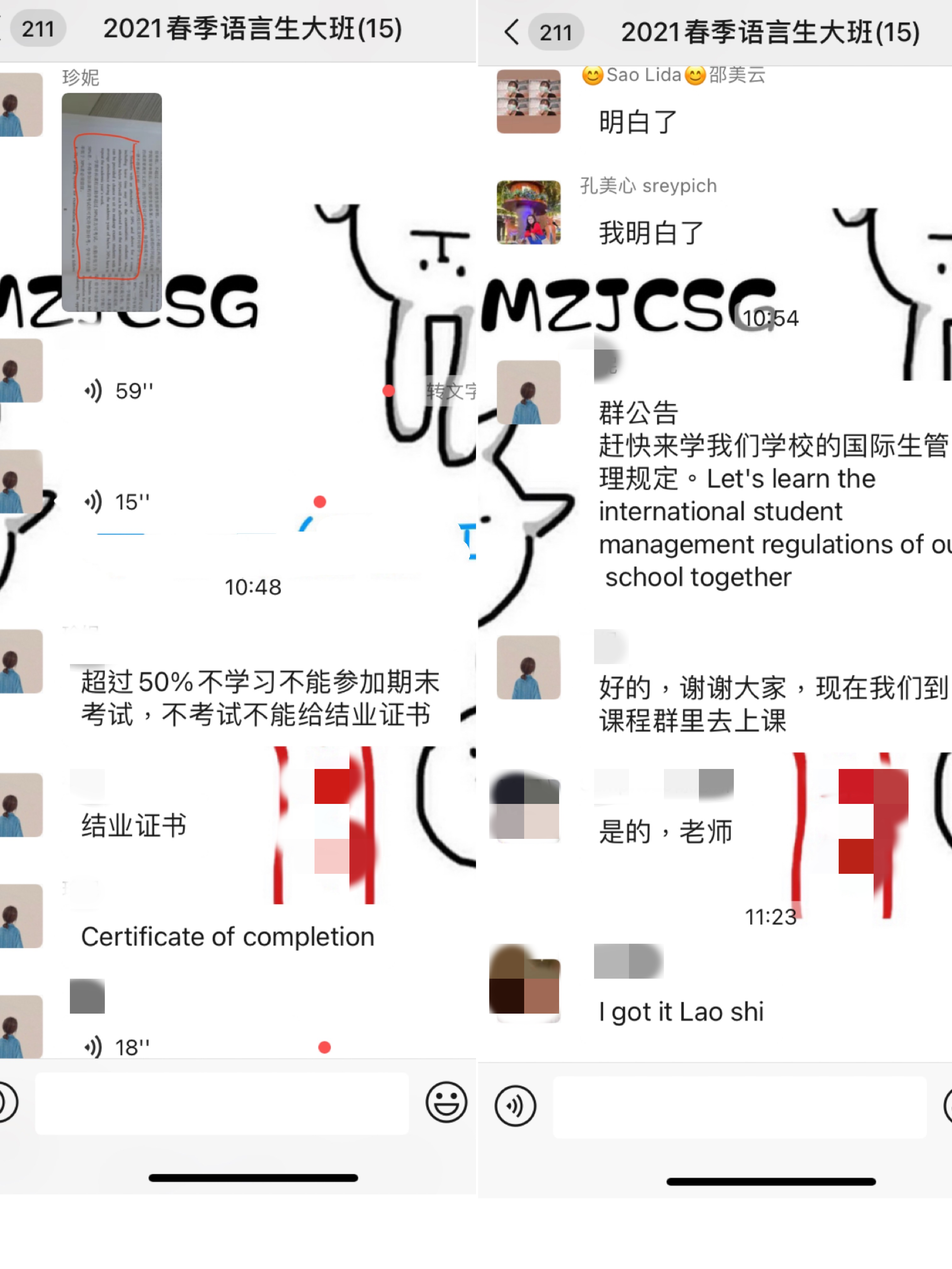 会议传达了开云官网国际生相关管理规定和其他注意事项,如中国法律法规、校纪校规、国际生成绩考核、结业和毕业要求、校园秩序与课外活动等。要求国际生认真完成线上课程的学习、以及酒店管理专业国际生的实习任务,以期顺利结业和毕业。同时,叮嘱国际生做好所在国防疫措施,及时与班主任和辅导员保持联系。