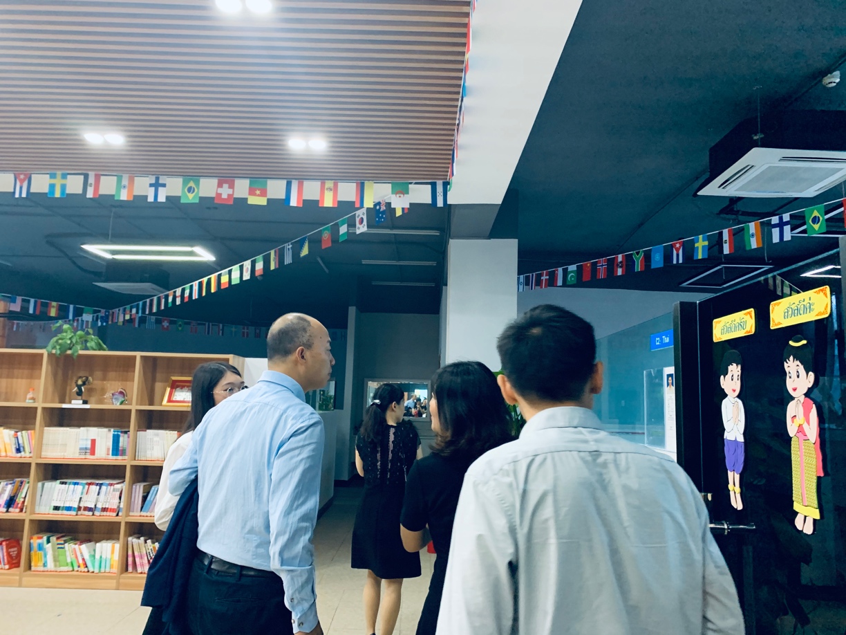 会后四名专职老师陪同来访一行参观了留学生教室、留学生宿舍、国际语言体验中心等。