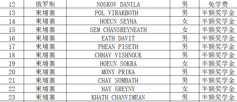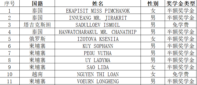 开云kaiyun登录入口2019年下半年国际学生招生工作已结束,现公布录取名单: