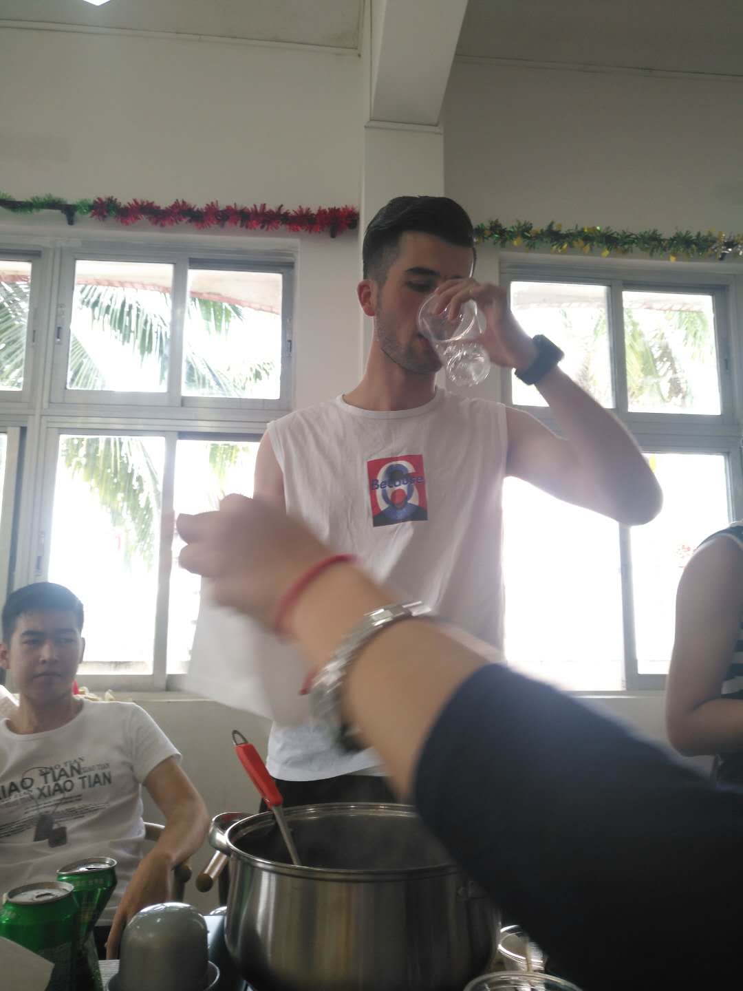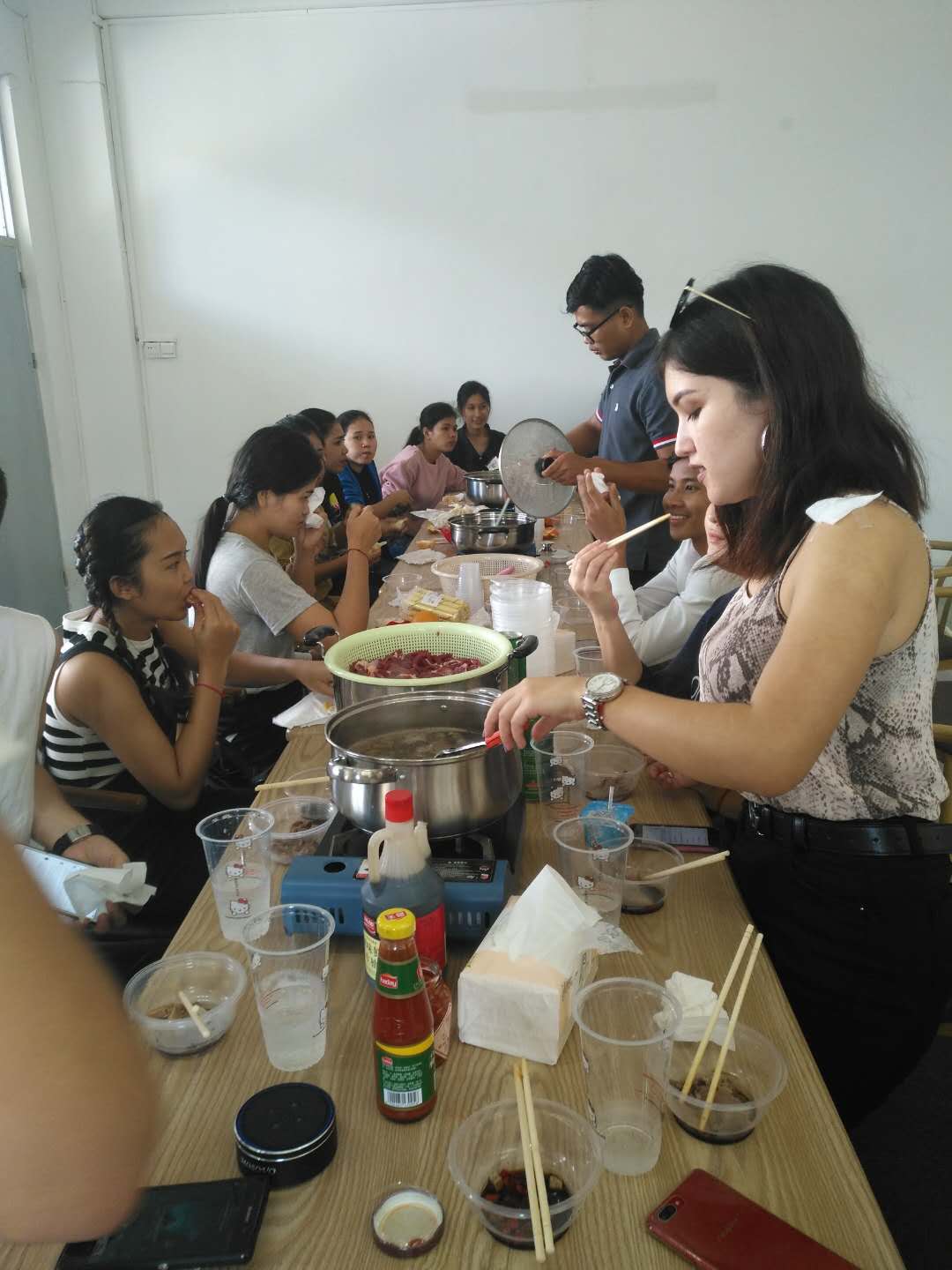 在团拜会中,国际交流中心代表学院领导和全体师生向留校的外籍人士表示了问候和忠心的祝福,祝福大家2019年新春快乐,身体健康,工作顺利和学习进步。这些外籍人士都是第一次在我国过春节,心情很兴奋,大家一起动手做饭菜,吃饺子,互相交流,互相祝福。期间,大家播放各自国家的歌曲,载歌载舞,共庆中国新年。