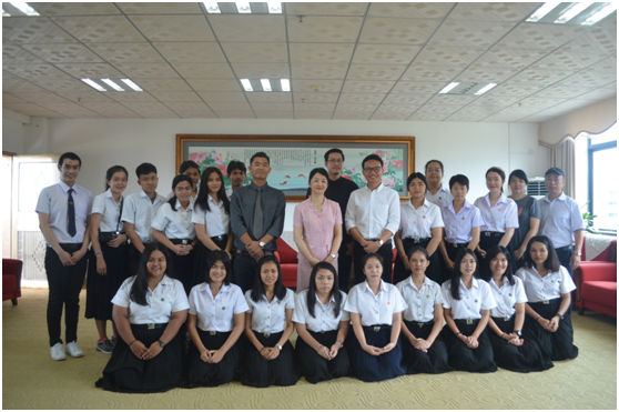 开营仪式开始前,李渝凤院长在接待室接见了泰国BSRU 学习团一行22人。李院长首先欢迎大家来到海外院交流学习,并向大家简要介绍了海外院。随后,李院长向大家阐述了海南自贸区成立的便利,并由此给大家带来的便利。李院长衷心祝愿大家本次交流学习期中收获知识和快乐,享受这段美好的旅程。最后,大家与李院长合影留念。