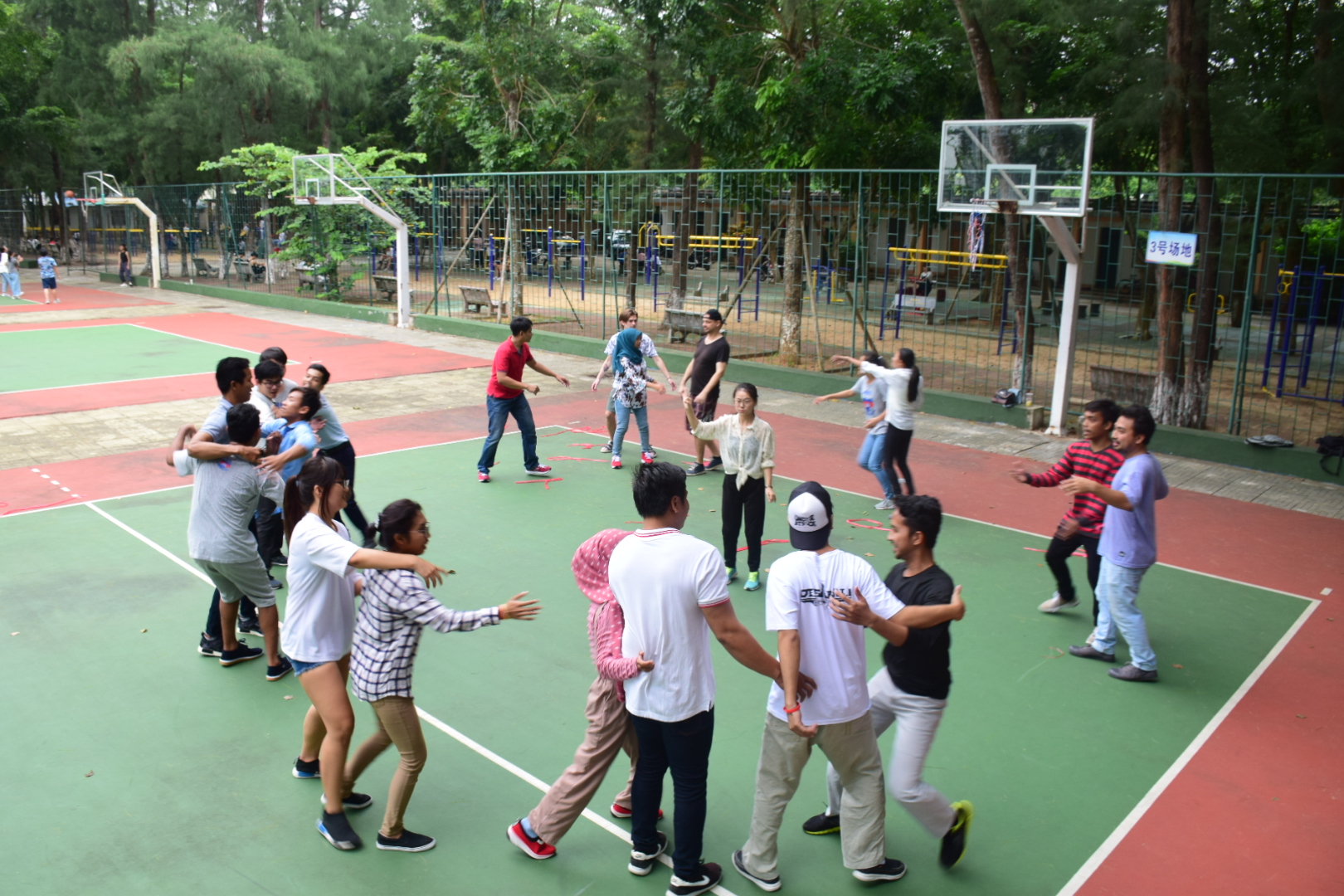 本次趣味运动会由国际交流中心的教师精心策划组织,运动会包括“两人三足”、“爱的抱抱”、抢凳子“等项目。留学生们在每一个游戏环节中都发挥个人所长,通力合作。游戏的分数和胜负已变得不再重要,同学们在游戏中彼此相知相惜,共同承担压力,一起分享欢愉才是游戏的最终奥义。所有的游戏参与者,纷纷打破队与队的界线,欢笑畅谈,分享着各自在游戏中的有趣经历,令原本激烈、紧张的竞技比赛,变成为一场别开生面的友谊盛会。同学们纷纷表示,这次运动会让他们感觉回到了童年。