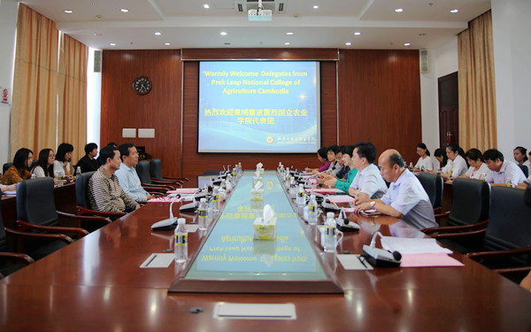 为进一步促进两校的合作,10月24日下午,柬埔寨波雷列国立农业学院校长图恩法萨那(音译,Thun Vathana)教授、副校长蒙索昆(音译,Meng Sokhon)教授对我院进行回访,我院李渝凤院长、杨学前副院长热情接待了来访者一行。双方在综合楼7楼第一会议室开展座谈。党委办公室、学院办公室、教务处、国际交流中心和各系党主要负责人参加座谈。杨学前副院长主持座谈会。