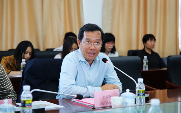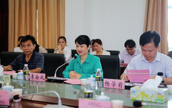 会议伊始,李渝凤院长首先代表学院对图恩法萨那(音译,Thun Vathana)校长、蒙索昆(音译,Meng Sokhon)副校长的到来表示欢迎和感谢。在简要介绍我院办学历史、专业设置、人才培养质量等情况及回顾了两校牵手合作的过程之后,李渝凤院长重点介绍了我院对外合作交流的做法和成就。她指出,在我国推进“一带一路”建设背景下,我院大力拓展与东盟国家的交往与合作,开设了泰语、印尼语、越南语、缅甸语、马来语、柬埔寨语等东盟5个国家的语种专业,设立了针对东盟国家学生的奖学金,与泰国、印尼、马来西亚、柬埔寨等国的高校建立了合作关系,合作成果丰硕。