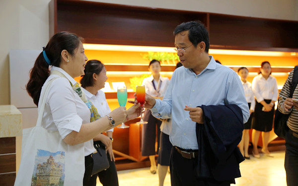 会后,来访者一行还实地参观了我院酒店综合实训室、日韩风情文化实训室、体艺馆、图书馆等场所,参观了柬埔寨师生所生活的留学生公寓。看到我院给留学生们提供了良好的居住环境和齐全的生活设备,两位校长表示了感谢和赞许。