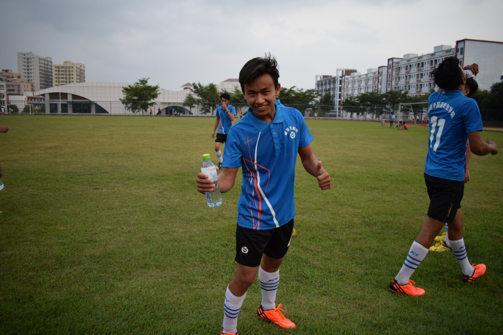 据悉,留学生队由8名柬埔寨留学生和3名印度尼西亚学生组成。留学生为此次比赛进行了为期一周的赛前训练,每天下午下课后都去操场热身,熟悉球感,争取在有限时间内取得最大的锻炼效果。其中,柬埔寨留学生的带队老师还自费为他们购买了球鞋。