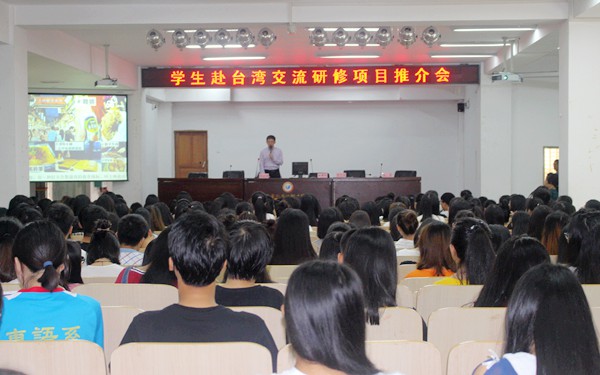 在随后举办的赴台交流研修项目推介会上,黄文琛博士和杨燿诚博士还先后向我院师生介绍了台湾首府大学、景文科技大学的情况。