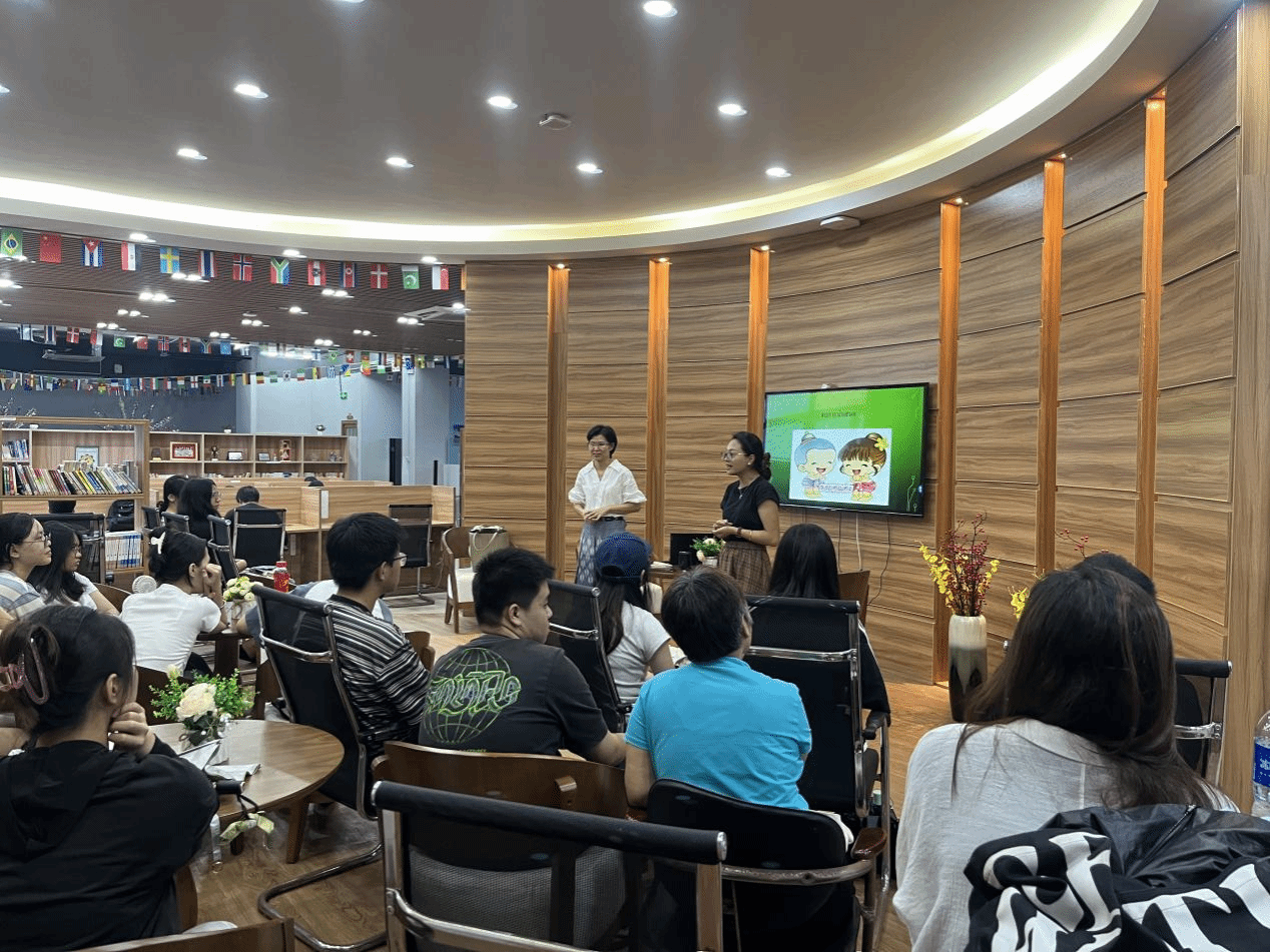 本期沙龙的主讲嘉宾是开云官网泰语外籍教师CHUTHARAT PHONCHOKKUNLAPHAT(昵称奈斯),以其独特的学术视角和丰富的文化积淀,将泰国语言文化中的中国元素徐徐展开。在奈斯老师的引领下,现场师生仿佛穿越时空,走进了泰语与中文交织的奇妙世界。她以泰语语言文字特点为切入点,细致剖析了泰语语音和声调的独特韵味,并巧妙揭示了随着语言的发展,泰语基本词汇的局限性促使中文借词应运而生。奈斯老师通过生动的实例,展示了泰语中那些源自广州潮汕、福建闽南的语言宝藏,让在场的每一个人都为之惊叹。