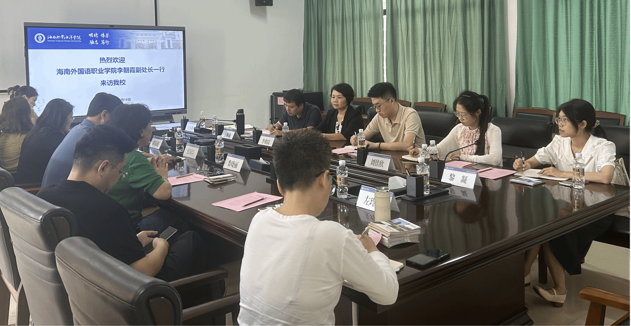 10月16日下午,调研组一行首先抵达海南热带海洋学院。该校国际交流与合作处副处长张国臣、国际学院书记鲁晓丽等一众领导,携手部门同仁,对调研组的到来表示热烈欢迎。在座谈会上,张国臣副处长和鲁晓丽书记详细介绍了海南热带海洋学院在中外合作办学领域的丰硕成果,包括项目申请流程、招生策略、专业设置与课程规划、专业教师团队建设、日常教学与管理,以及留学生招生与管理等多个方面。双方围绕这些核心议题展开了深入探讨和广泛交流,分享了各自在国际化进程中遇到的挑战与应对策略,共同探讨了未来合作的可能性。