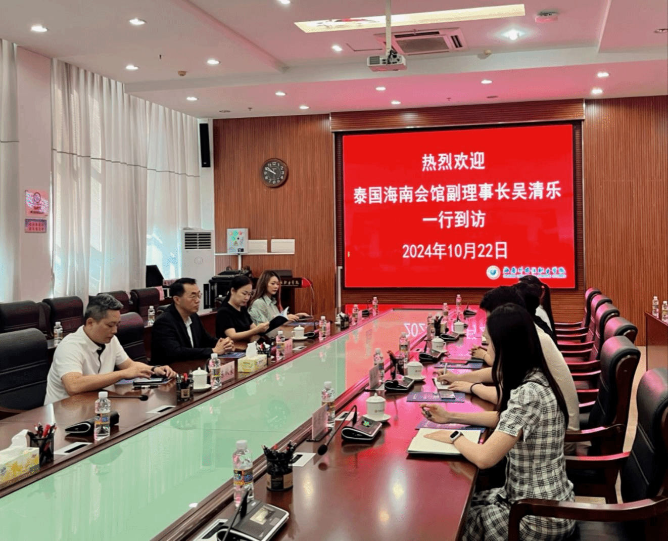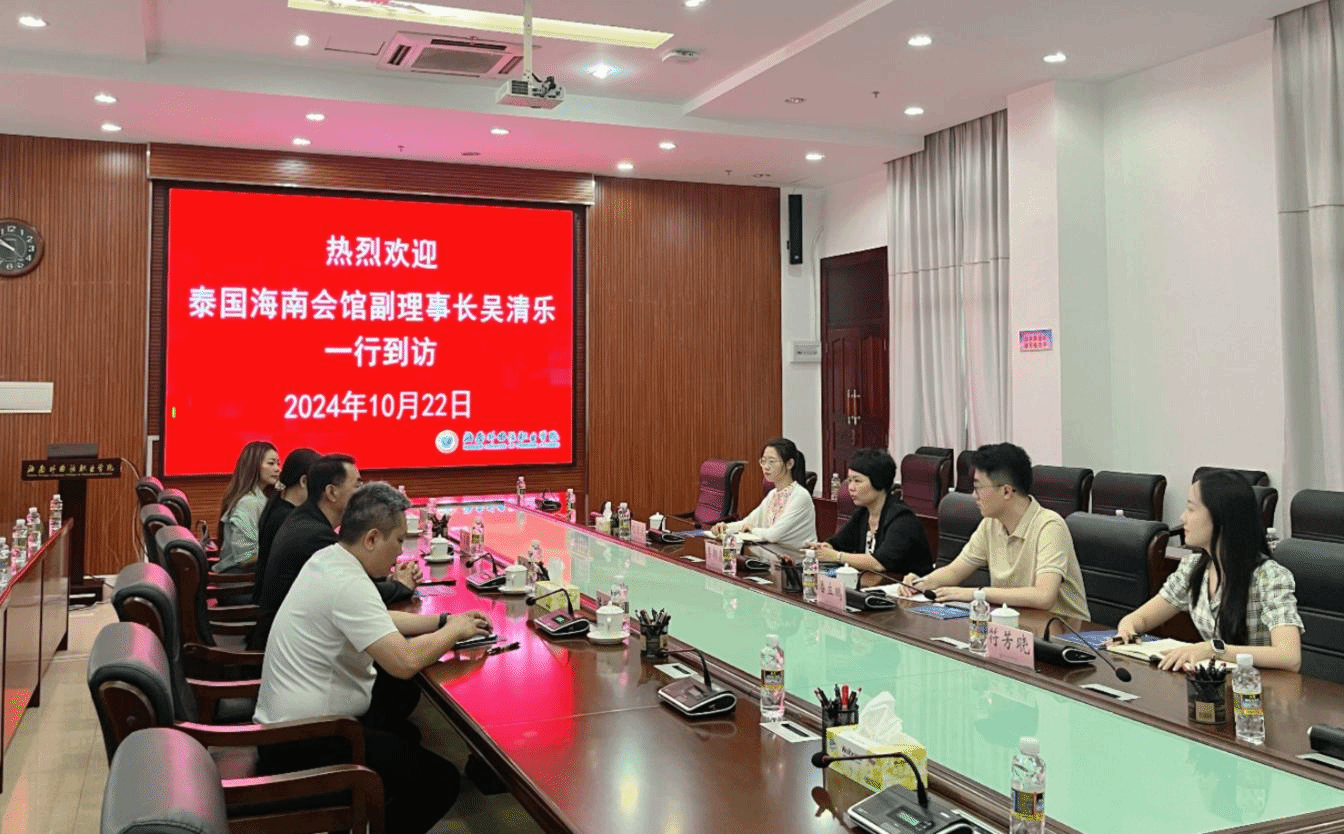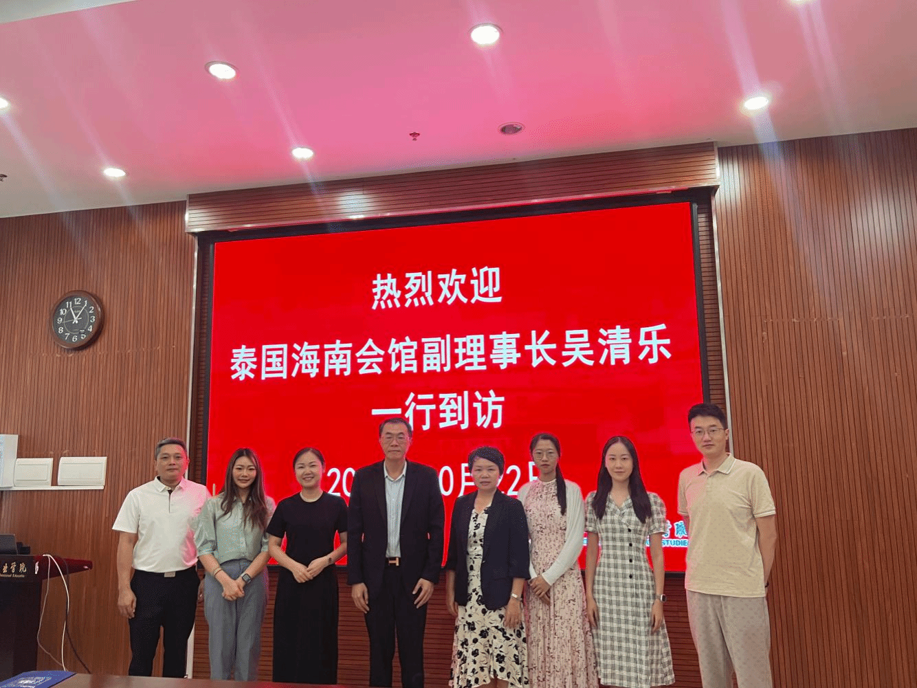 李朝霞对泰国海南会馆一行的来访表示热烈欢迎,感谢泰国海南会馆对学校教育教学工作的支持、对留学生的关心关爱,感谢海南省归国华侨联合会、文昌市归国华侨联合会及市委统战部长期以来对学校的支持和信任。她详细介绍了学校的留学生管理、汉语教育教学、国际交流合作、留学生生活等情况,表示学校坐落于“华侨之乡”文昌,校园内华侨文化氛围浓厚,今后学校也将加强与泰国海南会馆的联系,与广大泰国侨胞同气连枝,协力推动学校和文昌教育事业发展,深化泰国、海南的教育合作。