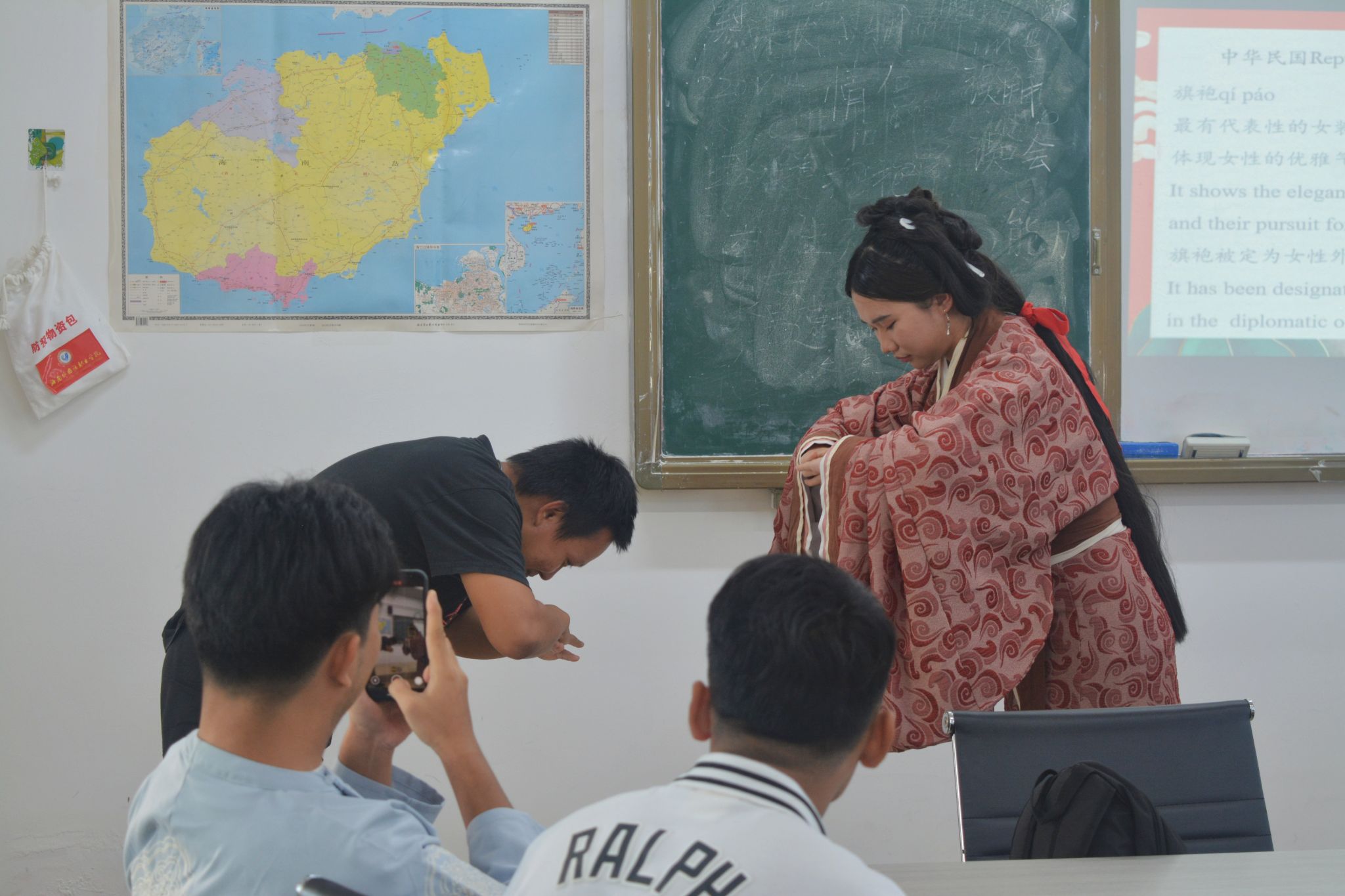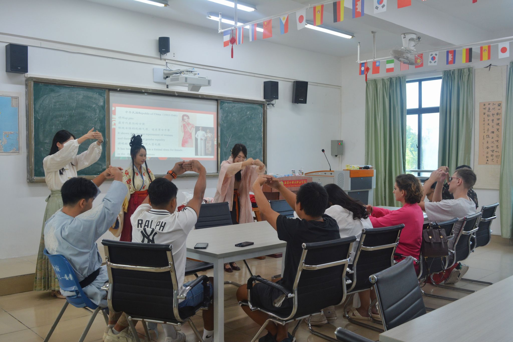 11月13日下午,国际合作与交流处在BE503教室举行中国传统服饰体验活动,来自俄罗斯、柬埔寨、泰国、缅甸等国的学生、对外汉语教师及子衿汉服社成员参加了本次活动,活动旨在通过介绍与展示,让参与者了解中国传统服饰的历史演变和文化内涵,通过亲身体验,感受中国传统服饰的独特魅力,弘扬中华优秀传统文化。