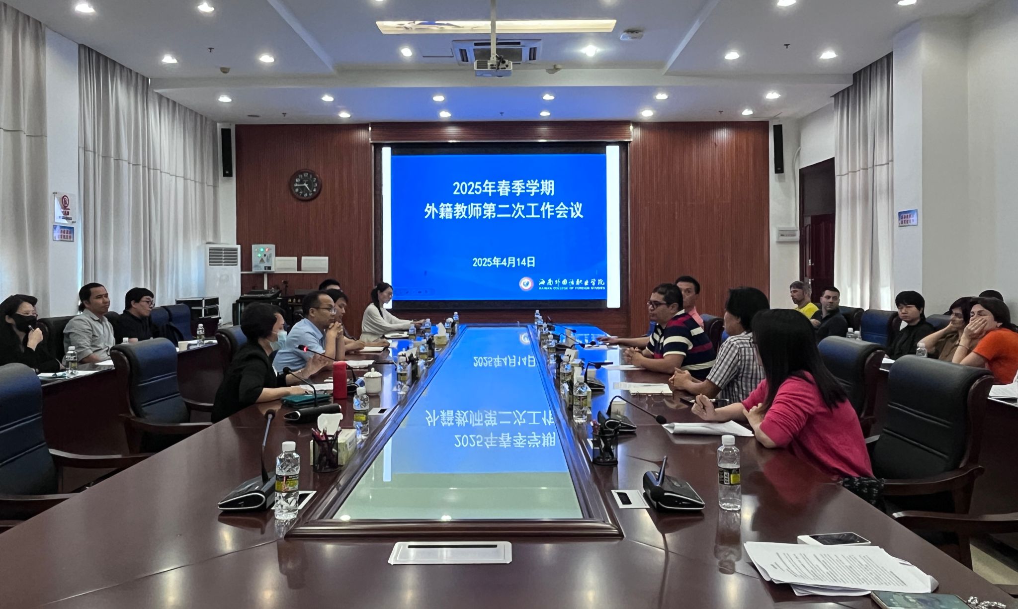 会议围绕三项重点内容展开讨论:首先开展涉外法律法规学习活动,随后细致解读新修订的《外籍教师请假管理规定》,最后专题介绍学校“外籍人才安居计划”。
