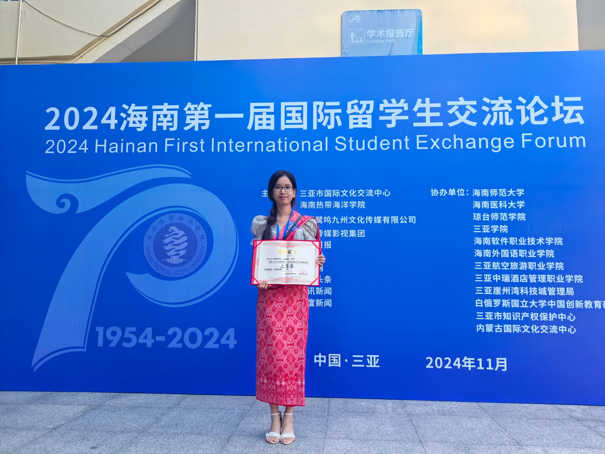 11月28日,海南第一届国际留学生交流论坛在海南热带海洋学院举行,开云官网来自柬埔寨的留学生贤金凤(外文名:HEANG KIMHONG)在交流论坛中的演讲比赛环节荣获三等奖。本届论坛由三亚市国际文化交流中心主办,演讲比赛主题为“留学生眼中的海南自贸港”,全省10所高校的25名来自不同国家的留学生纷纷登台演讲,他们结合自己在海南的学习和生活经历,分享了对自贸港建设的深刻理解和感悟。