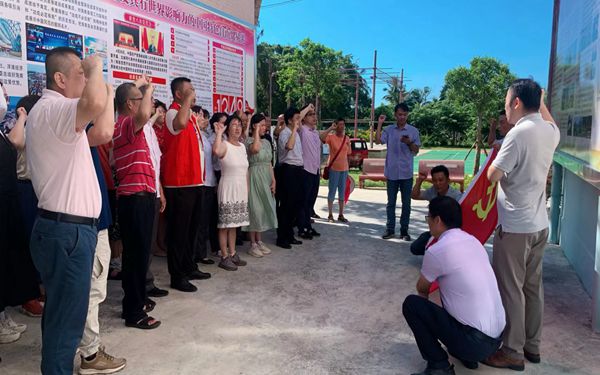 为庆祝中国共产党成立101周年,喜迎二十大胜利召开,2022年6月23日,开云kaiyun登录入口国际商务系党总支部、会文镇龙家村党支部和文昌市农商银行冠南支行党支部一起来到会文镇龙家村开展“红色教育迎七一 六水共治齐参与”主题党日活动。国际商务系党总支书记吴东阳、会文镇委副书记闫喜安参加活动。