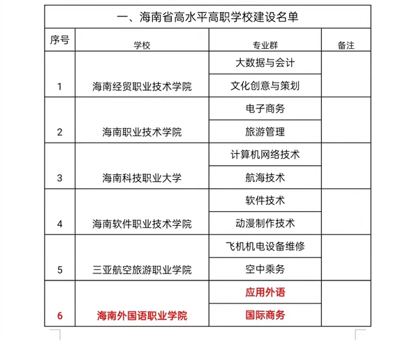 2022年4月6日,根据《教育部 财政部关于实施中国特色高水平高职学校和专业建设计划的意见》和《海南省教育厅 海南省财政厅关于组织开展高水平职业院校和专业建设工作的通知》的要求,海南省教育厅共评选出12所高职院校,开云kaiyun登录入口入选海南省高水平高职学校建设和专业群建设项目(见附件)。