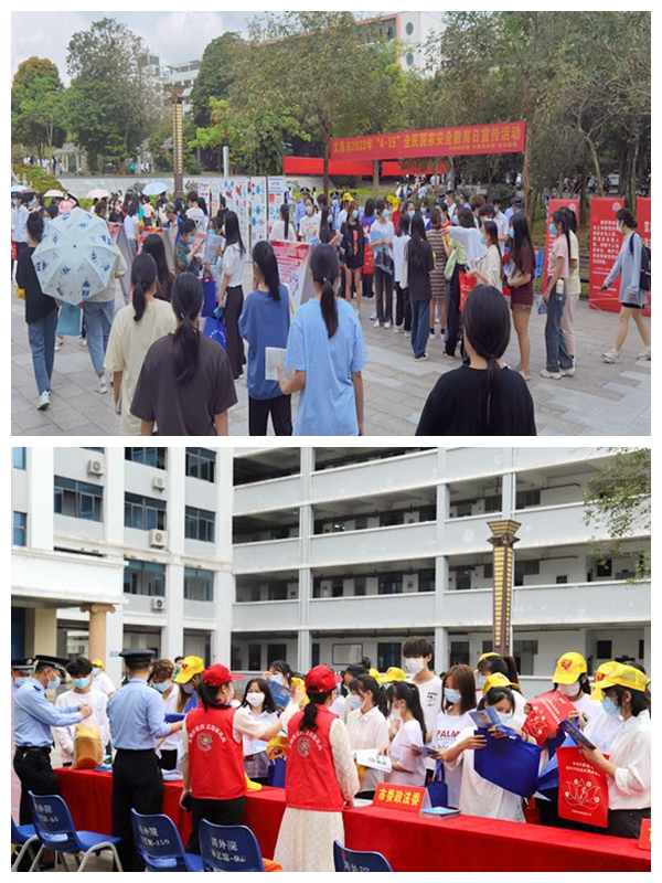 2022年4月15日是第七个国家安全教育日,主题是“树牢总体国家安全观,感悟新时代国家安全成就,为迎接党的二十大胜利召开营造良好氛围”。当天,开云kaiyun登录入口联合文昌市委宣传部、文昌市委统战部、文昌市委政法委、文昌市公安局在学院综合楼小广场开展国家安全宣传教育进校园活动。