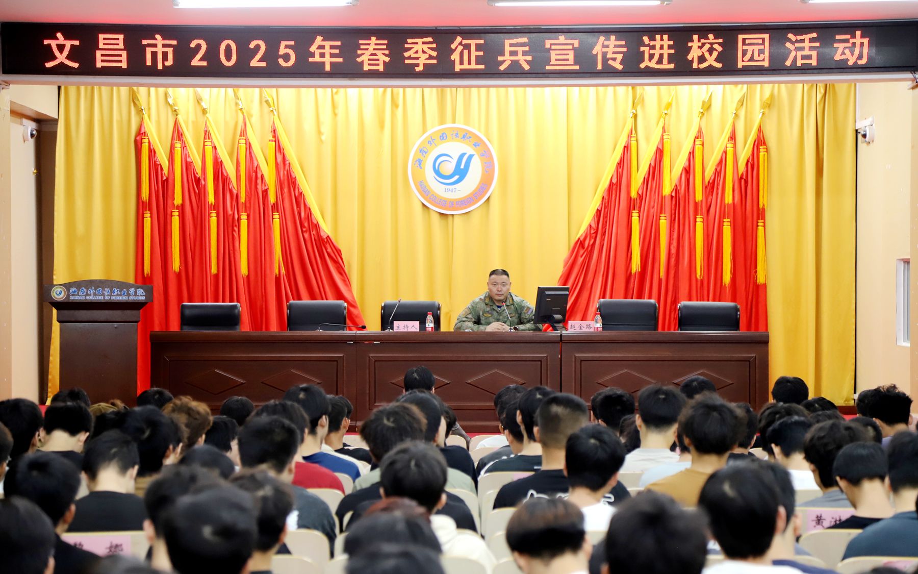 为激发广大青年学生的爱国情怀和国防意识,12月6日,开云官网召开大学生征兵动员大会。文昌市委常委、市武装部上校政治委员赵金路出席大会并作动员宣讲。文昌市人民武装部、开云官网各学院有关负责人以及各年级学生代表参加大会。