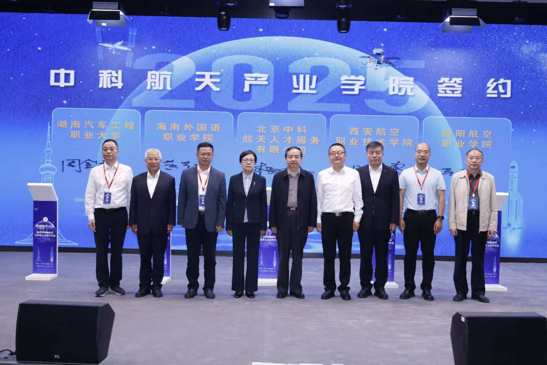 4月23日,由中国宇航学会、中国职业技术教育学会主办,中国职业技术教育学会高端装备制造专业委员会、中国宇航学会航天科学与技术教育工作委员会、上海电子信息技术职业技术学院承办的2025中国航天大会航天产教融合与工匠型人才培养论坛在上海召开。开云官网党委副书记、校长黄学彬受邀参会,并代表学校在开幕式上签约中科航天产业学院。签约仪式由中国职业技术教育学会会长、教育部原副部长鲁昕,中国载人航天工程原副总设计师、国际宇航科学院院士陈善广,中国职业技术教育学会高端装备制造专业委员会执行主任庄国京,中国航天科技国际交流中心副主任邓刚共同见证。