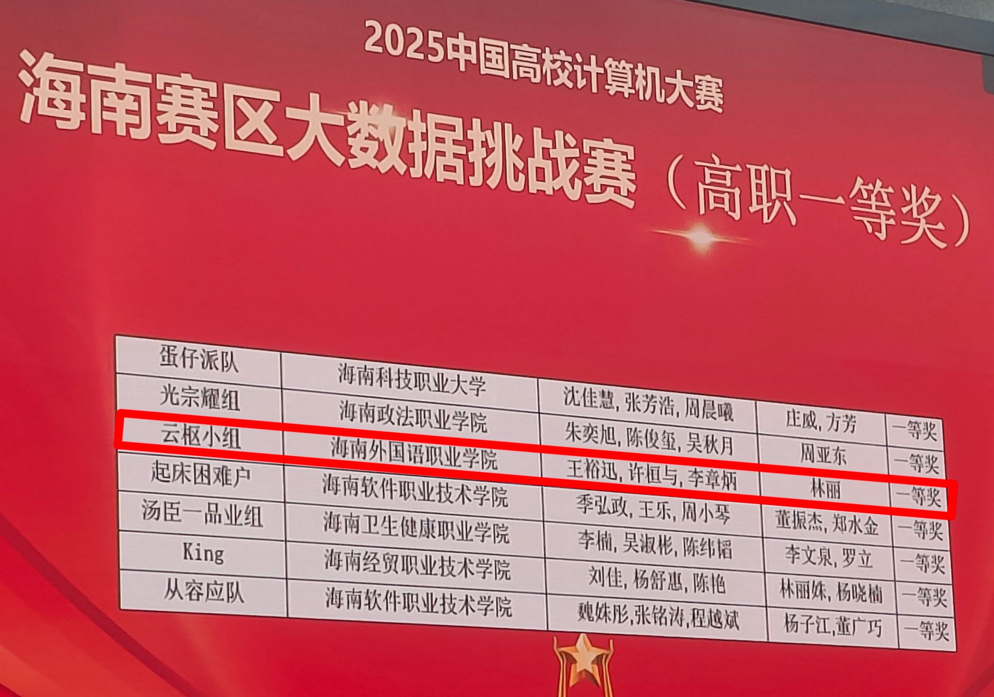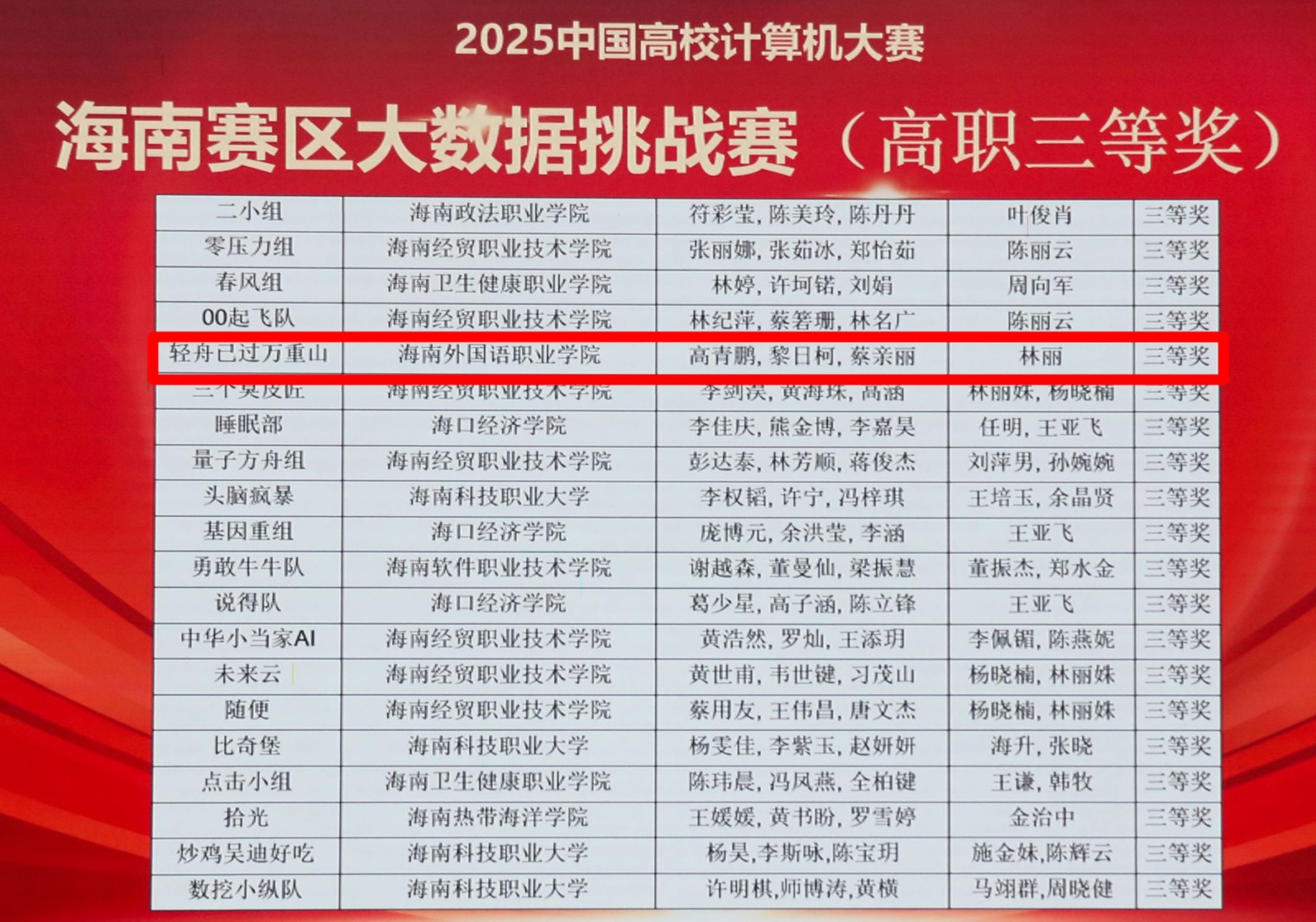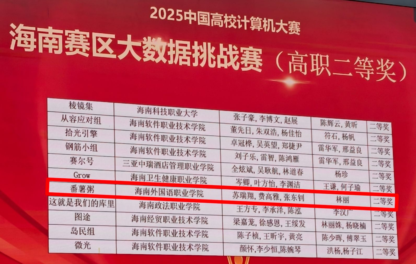 喜报!我院学子在2025中国高校计算机大赛-海南赛区大数据挑战赛中斩获多项殊荣