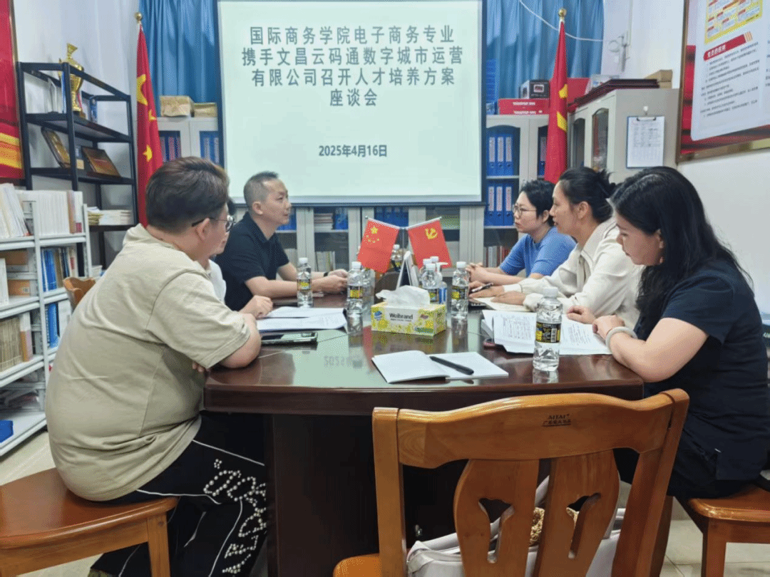 为深化产教融合,创新人才培养模式,4 月 17 日,我院与文昌云码通数字城市运营有限公司召开人才培养方案座谈会。学院副院长朱婷、电子商务教研室主任林梅、教师代表杨晓丽、彭滔、傅阳秋,公司运营总监符方瀚、项目负责人等参加了会议。双方围绕人才培养目标、实践教学环节等内容展开深入交流,共同探讨协同育人新路径。