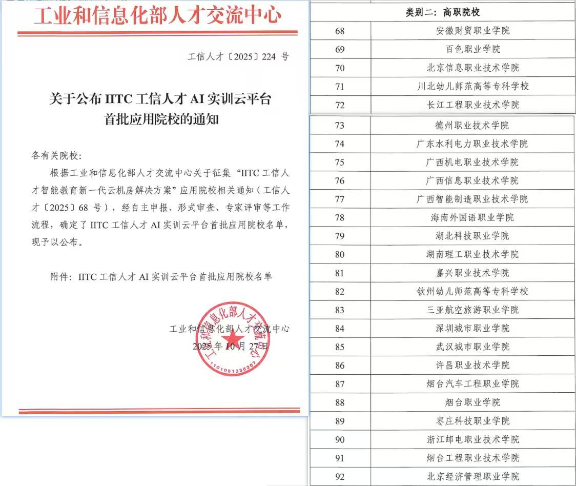 开云kaiyun登录入口入选IITC工信人才AI实训云平台首批试点单位