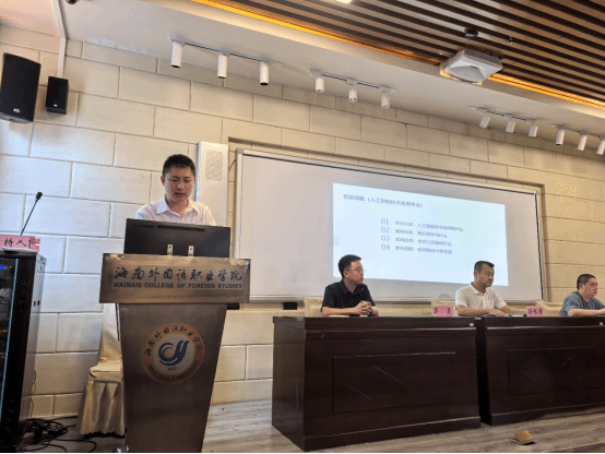 王波院长在致辞中指出,当前正处在人工智能蓬勃发展的时代,人工智能技术正在为各行各业赋能。他详细介绍了学院与海南超级卫星工厂合作共建的航天订单班、与京东合作成立的产业学院等校企合作项目,展现了国际智能学院强劲的发展势头。“学院正在积极推进多个产业学院项目,深入开展产教融合、校企合作,未来将努力实现在校学生在线承接项目并盈利的培养模式。” 王波院长强调,这一系列举措将为学生提供更加贴近产业实际的实践平台,有效提升学生的专业技能和就业竞争力。今年上半年学院紧紧围绕“新双高”建设和职业本科申办目标,在专业建设与招生、校企合作等方面取得显著成效。成功增设了“无人机应用技术”“机电一体化技术应用”两个新专业,成倍扩招人工智能专业学生,学院现有学生规模稳步扩大,生源质量显著提升。