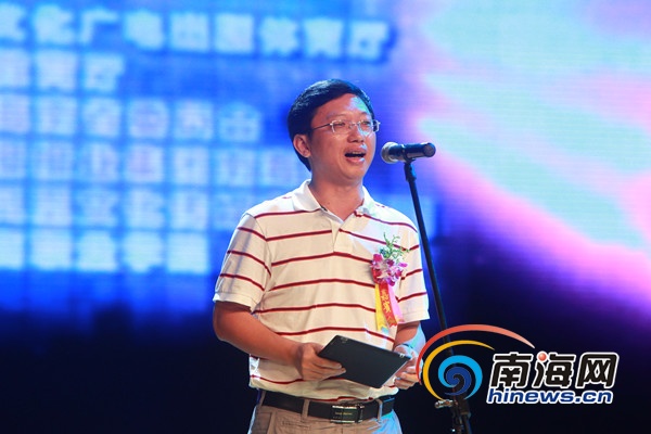 南海网总编辑韩潮光在海南首届高校十大校园歌手大赛中致辞(南海网记者陈望摄)