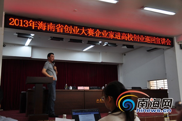 海南省委省政府一直高度重视就业和创业工作,省人力资源和社会保障厅、省财政厅、省教育厅和共青团省委近年来多次成功举办了海南省创业大赛。“企业家进高校巡回宣讲”是海南省创业大赛的组成部分,本次宣讲是海南省人力资源开发局联合海南日报社南海网共同推出的“企业家进高校巡讲”的第二场。“企业家高校巡讲”还会走进琼海、三亚等地的高校,为更多高校学子插上创业梦想的翅膀。