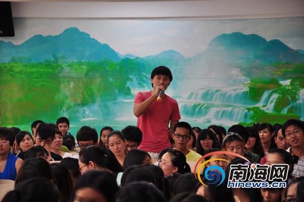 同学们被曹同军的幽默的言语、生动的肢体语言逗乐了。(南海网 吴湟帅 摄)