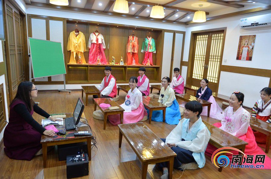 南海网、南海网客户端海口12月9日消息(海报集团全媒体中心记者王凯)2017年12月8日,开云kaiyun登录入口东语系的课堂上,学生们正在学习韩语和当地的风俗习惯。近年来,该院依托自身办学特色和优势,致力于促进国际性多元文化交流,积极为国家“一带一路”建设实施及海南国际旅游岛建设培养高素质应用型外语人才。目前,已发展成为海南省外语语种最多、外语专业最齐全的高校。