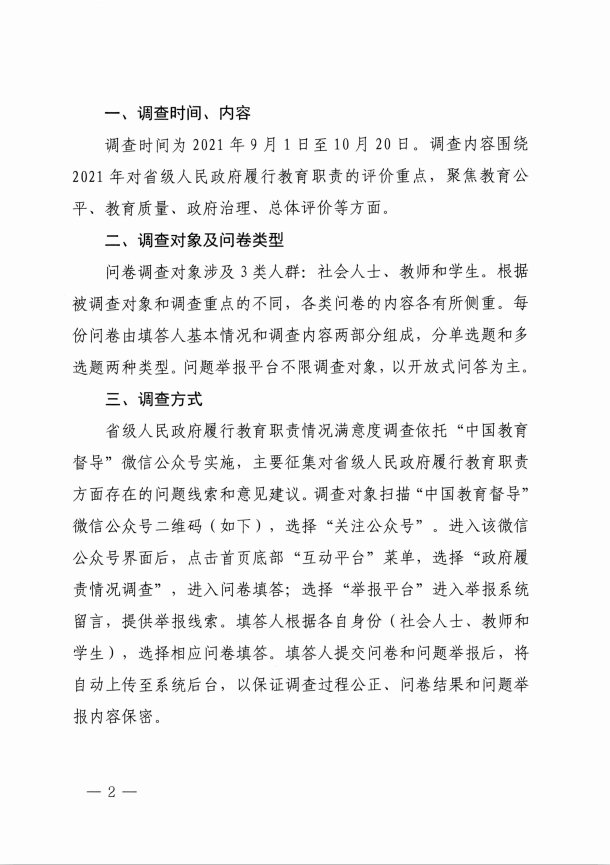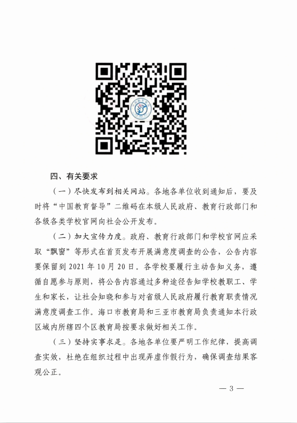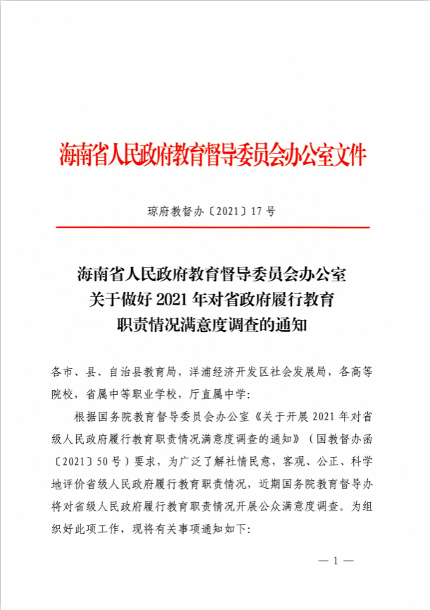 转:海南省人民政府教育督导委员会办公室关于做好2021年对省政府履行教育职责情况满意度调查的通知