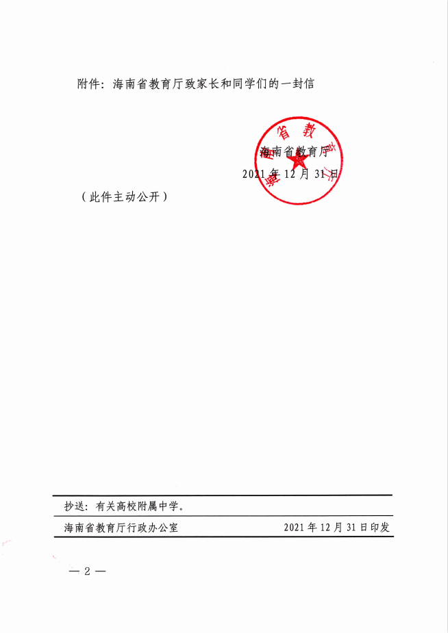 转:海南省教育厅关于印发《海南省教育厅致家长和同学们的一封信》的通知