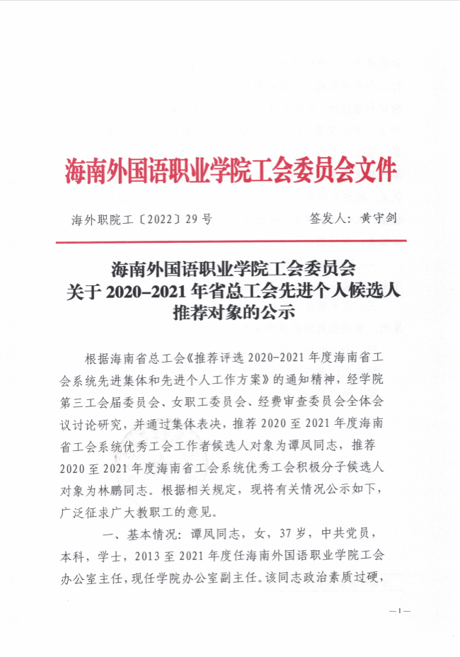 开云kaiyun登录入口工会委员会关于2020-2021年省总工会先进个人候选人推荐对象的公示