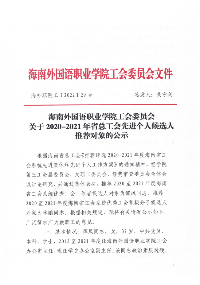 开云kaiyun登录入口工会委员会关于2020-2021年省总工会先进个人候选人推荐对象的公示
