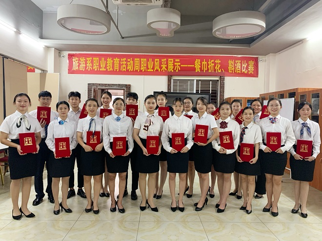 5月10日下午,旅游系职业教育活动周职业风采展示斟酒、餐巾折花技能大赛圆满落幕。