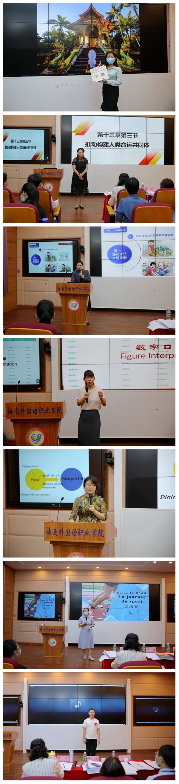 为体现比赛公平、公正、公开的精神,我院特邀省内高校相关专业专家,从课堂教学展示、课程思政教学设计汇报、答辩三个环节进行现场打分与点评。来自思政部、英语系、国际商务系、东语系、西语系、旅游系、人文艺术系的参赛教师采用形式多样的教学手段、声情并茂、深入浅出讲解节选课程知识要点,展示出青年教师多样化的教学风格和扎实的教学基本功。最终,思政部教师肖宝佳荣获一等奖。