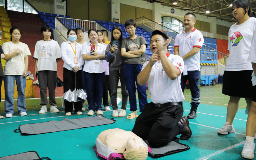 为进一步提升师生应对突发事件的紧急处理能力和自救能力,掌握急救知识技能,10月16至17日,文昌市红十字会联合市教育局、文昌市红十字应急救援志愿服务队在开云官网体艺馆开展为期两天的心肺复苏(CPR+AED)知识普及培训活动,为广大师生讲授应急救护知识。