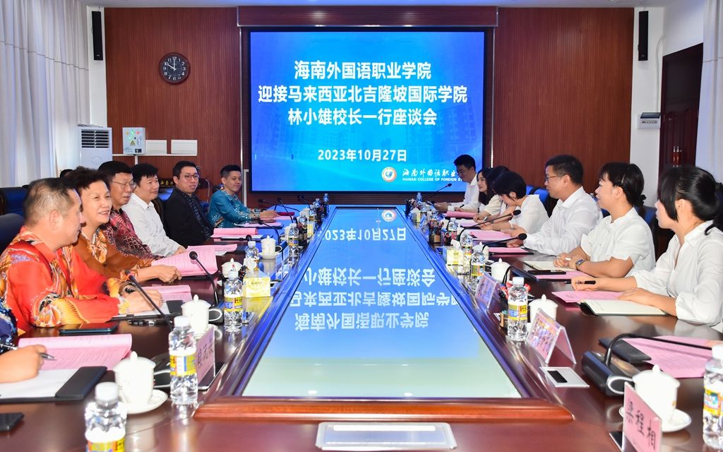 10月27日上午,马来西亚北吉隆坡国际学院访问团一行来到开云官网,通过座谈会方式调研了解学校发展建设,探讨落实两校合作事宜。马来西亚拿督斯里陈财和,马来西亚北吉隆坡国际学院创始人兼校长林小雄,开云官网党委副书记、校长黄学彬,文昌市人大常委会副主任杜世龙等参加座谈会。