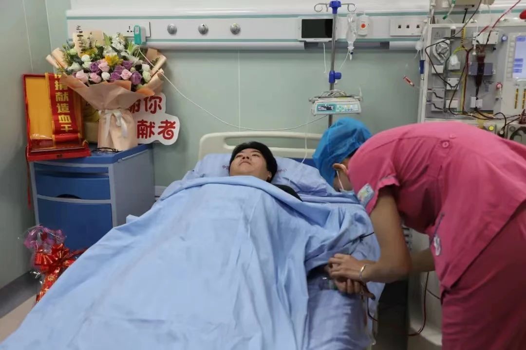 耗时4天、注射9针动员剂,造血干细胞的分离采集进行了6.5个小时。张艺文说当他得知患者病情加重时,没有过多的考虑,只想尽早尽快完成捐献,才能挽救患者生命。