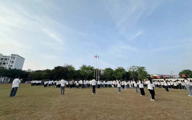4月15日清晨,一场升旗仪式在田径运动场内举行。在雄壮国歌声中,国旗冉冉升起,同学们严肃站立,向国旗行注目礼。学生代表在国旗下作主题宣讲,介绍“国家安全教育日”的起源和意义,带领全体同学庄严宣誓,号召共同关注国家大事,积极参与国家安全教育活动,以实际行动为维护国家安全贡献青春力量。