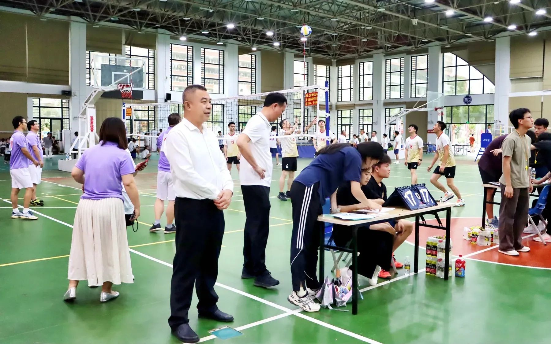 赛场上,教师们不仅展现了高超的球技,更体现了团队协作的精神。每一次扣杀、拦网和救球,都凝聚着队员们的心血与汗水。他们用行动诠释了“友谊第一,比赛第二”的体育精神,场上的竞争激烈而有序,场下的助威声此起彼伏,整个赛场洋溢着浓厚的竞技氛围和团结友爱的气息,全校广大教职工众志成城,尽情挥洒,互促互进,奋勇拼搏,赛出了风采,赛出了高度,取得了精神风貌和竞技水平的双提升。