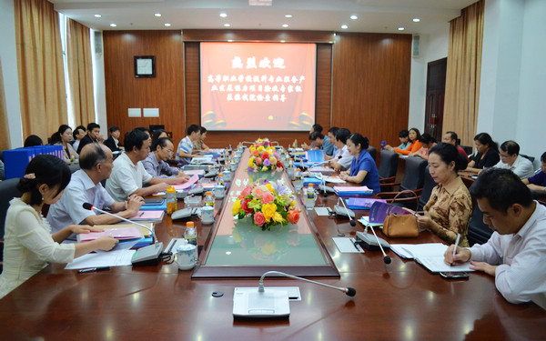 11月13日上午,受省教育厅、省财政厅委托,高等职业学校提升专业服务产业发展能力项目验收专家组一行8人莅临我院,对我院中央财政支持的“商务英语”、“应用俄语”两个专业的建设情况进行现场验收。此次验收专家组组长由长沙航空职业技术学院院长朱厚望教授担任,成员包括海南师范大学党委副书记张诚一教授、海口经济学院副校长张龙庭教授、三亚理工职业学院院长秦杰锋教授、观澜湖海口旅游度假区人力资源总监杜云杰、海南软件职业技术学院党政办副主任罗孝友。省教育厅高等教育处副主任科员欧阳歆、财务审计处刘晓敏等有关人员随行莅临我院指导工作。