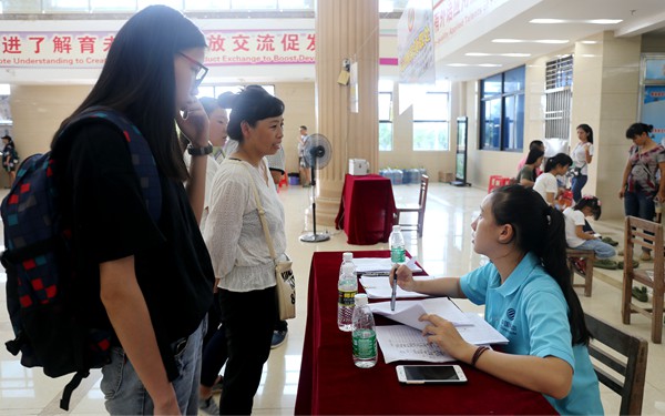 来自我院16级西语系的刘同学在父母的陪同下来到学院报到,在我们的采访中,刘同学的母亲眼含泪水哽咽的说到:“她从小在我身边长大,从一个小小的婴儿,到一步步迈出脚步,走出家门,走向学校,步子渐行渐远,我们虽知道只有让她独自面对问题,从锻炼中成长,才能独当一面。可是,说着容易,做起来,就如亲手割肉送人一般艰难。”而在我们采访中,另一位新生的父母也表示:“虽然现在依依不舍,可只愿孩子能完成梦想,实现理想,成为人中龙凤,我再苦再难受,我也愿意为他铺路。”而孩子们,对于母子离别,也是依依不舍,留恋不已的,可是既然选择这条路,就要走完它。