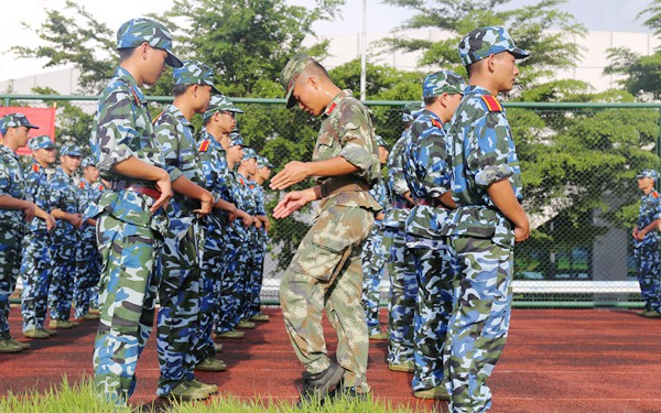据了解,传统的队列训练和表演项目依然是本次军训的重头戏。站军姿、踢正步、练列队是每个经历过军训的人再熟悉不过的训练内容,这些项目更贴近真正的军训生活,磨练学生的坚强意志,但每天军事化军训难免会有些枯燥,教官们会尽办法苦中作乐,为传统军训配方加料。在采访期间,笔者发现有一些教官会与新生们分享故事,在轻松的气氛中,新生们逐渐放下羞涩,纷纷讲述自己的有趣经历,引来阵阵欢笑,彼此间的情谊也渐渐得到增进。