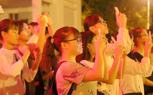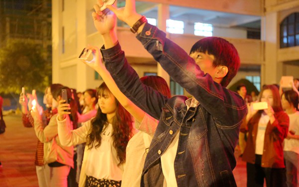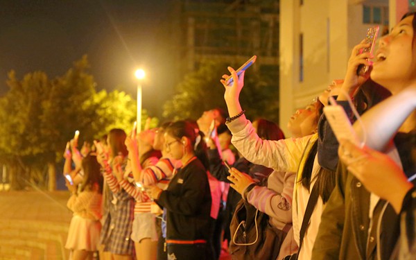 我院综合楼前广场,是校内观看火箭发射的最佳观测点之一。下午5点多,就有很多师生陆续聚集在此,等待“长征五号”发射的时刻。已见证过一次“长征七号”成功发射的老师和同学们,对于此次我国航天技术新突破的“长征五号”有着更大的期待。因为长征五号比现役火箭地球同步转移轨道运载能力提升了至少2.5倍,而长征五号中间主体部位直径达到了5米,比一般火箭主体胖了一半,所以长征五号还被大家亲切地称为“胖五”。