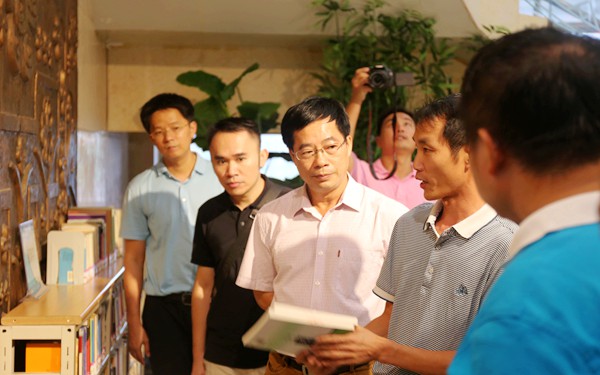 海口经济学院图书馆负责人为我院一行介绍图书管理做法