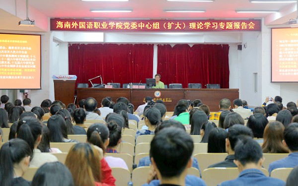 11月10日下午,我院在图书馆多功能报告厅召开党委中心组(扩大)理论学习专题报告会,专题学习党的十八届六中全会精神。报告会由学院党委书记陈礼民主持,特邀赵康太教授主讲。出席报告会的学院领导还有院长李渝凤,副院长周运诗。全体中层干部、思政课教师、辅导员,全体基层党组织委员、业余党校学员和学生党员参加了报告会。