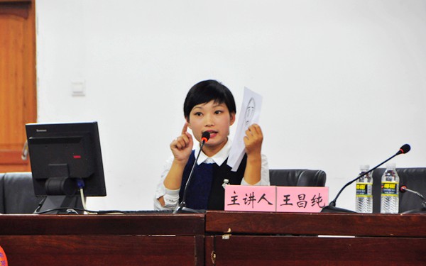 王昌纯导师首先说明了此次讲座的目的,希望通过讲座能让广大学生更好地认识自我。讲座一开始,王昌纯导师就以同学画自画像并用一段话来描述自己“性格”、“爱好”、“职业”、“优缺点”的方式,与同学进行现场互动,让同学们很快融入到讲座内容中。