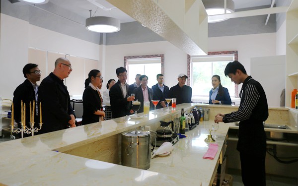 在学生实训基地,调研组一行现场观看了我院学生调酒、铺床、景点讲解等技能操作演练,对我院学生的专业技能给予充分肯定,同时就如何提升我院学生在就业创业中的竞争力提出了切实的建议和具体落实的方式方法。